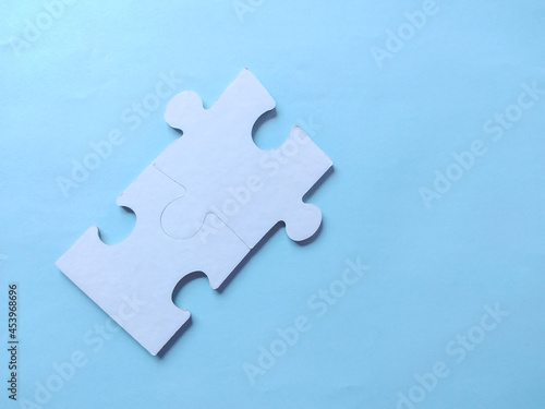 Puzzle piece on blue . Business solutions, success and strategy.