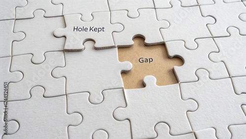 Puzzle Piece with Gap Showing Words "Hole Kept" and "Gap" on a Light Background Represents Missing Connection and Challenges