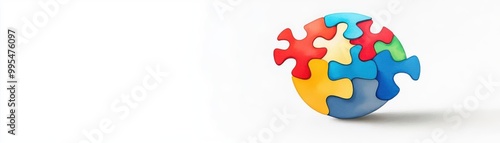 Puzzle pieces connecting over a globe, global inclusion, Watercolor style