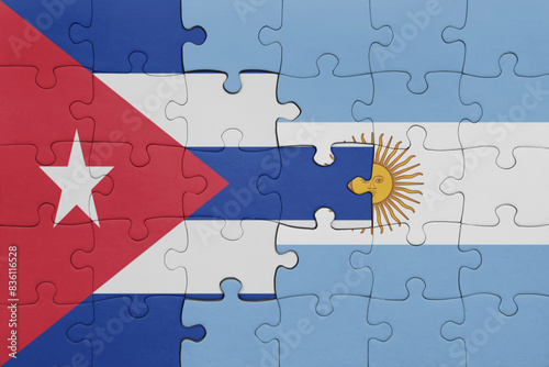 puzzle with the colourful national flag of argentina and flag of cuba .