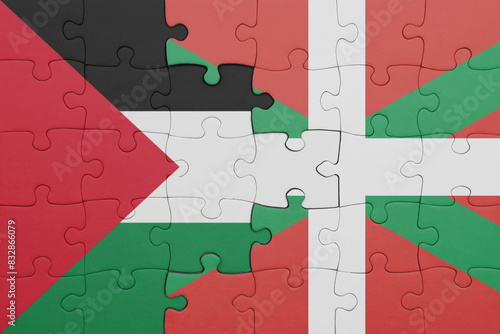 puzzle with the colourful national flag of basque country and flag of palestine.
