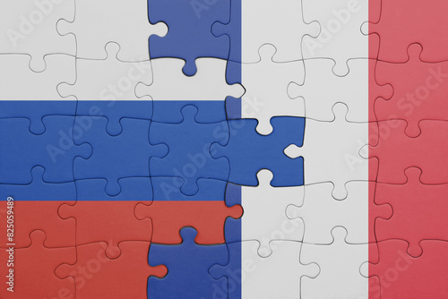 puzzle with the colourful national flag of france and flag of russia.