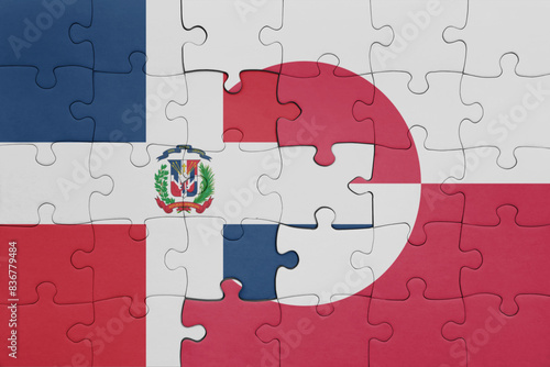 puzzle with the colourful national flag of greenland and flag of dominican republic .