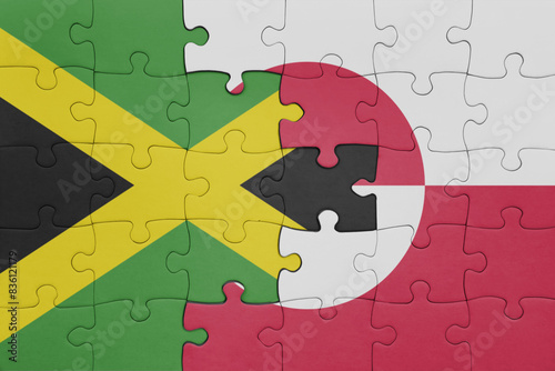 puzzle with the colourful national flag of greenland and flag of jamaica .
