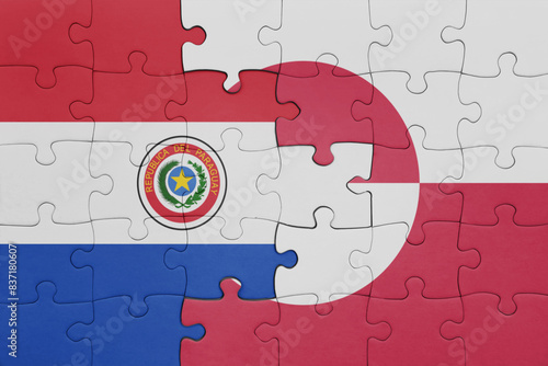 puzzle with the colourful national flag of greenland and flag of paraguay .