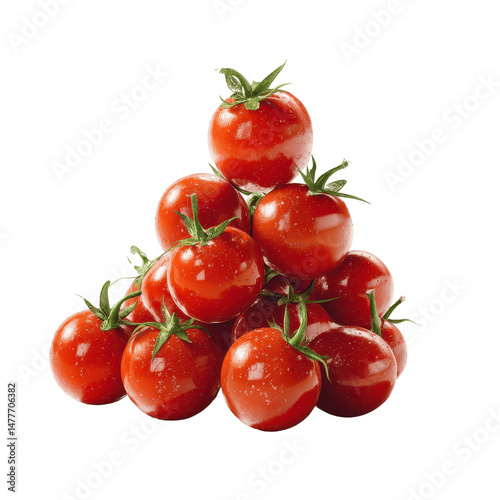 Pyramid of Fresh Red Cherry Tomatoes Isolated on White Transparent background