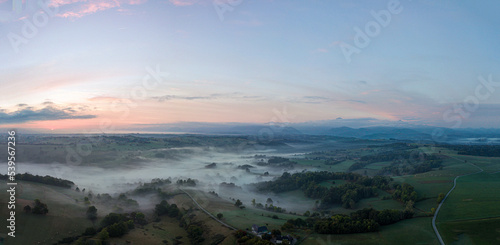 Pyrénées panoramique au matin brouillard