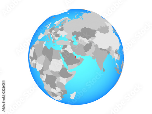Qatar on blue political globe. 3D illustration isolated on white background.