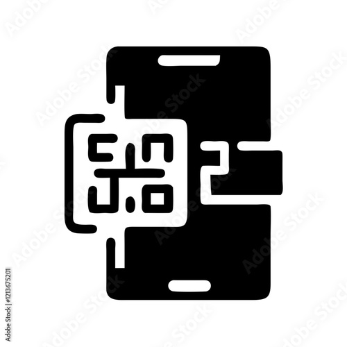 QR Code Scanning Smartphone Icon in Black and White for Digital Interface