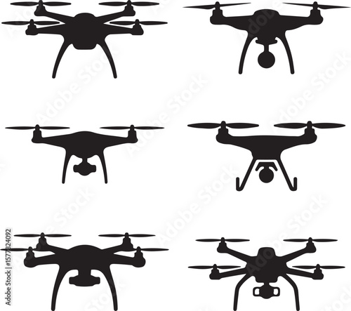 Quadcopter Drone Silhouette Vector Illustration Top View Drone Icon Design for Technology Projects Modern Drone Silhouette for Surveillance and Delivery Themes Black Drone Vector with Camera for Ph