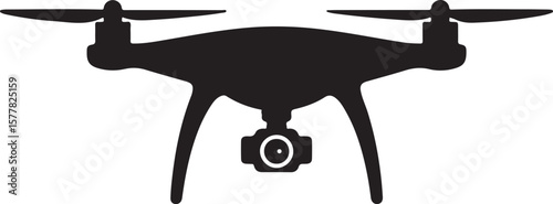 Quadcopter Drone Silhouette Vector Illustration Top View Drone Icon Design for Technology Projects Modern Drone Silhouette for Surveillance and Delivery Themes Black Drone Vector with Camera for Ph