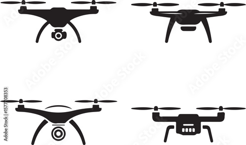 "Quadcopter Drone Silhouette Vector" "Aerial Camera Drone Icon Design" "Flying Tech Drone Clipart" "Modern Drone in Flight Illustration" "Futuristic Surveillance Drone Silhouette"