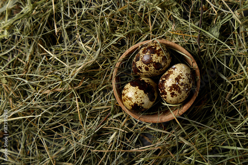 Quail eggs on the hay