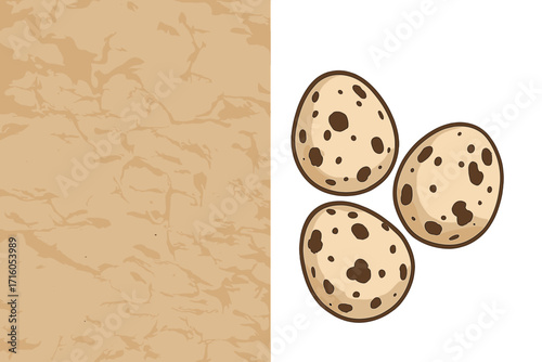 Quail eggs vector illustration with crumpled craft paper texture. Healthy organic food for easter menu design. Rustic farm fresh concept with vintage beige cardboard backdrop.
