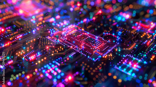 Quantum Computing Energy Field with Swirling Neon Fractal Patterns