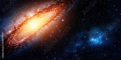 Quantum Computing entanglement concept. Cosmic galaxy with stars and vibrant colors in the universe.
