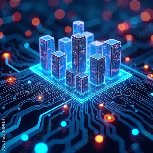 Quantum Computing Race: “A stylized lab environment where glowing superconducting circuits form a neon cityscape on a circuit board.