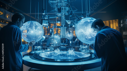 Quantum physicists with an Anacreontic flair stand in the laboratory