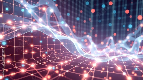 Quantum Technology Particle Grid Background with Futuristic Neon Energy Waves