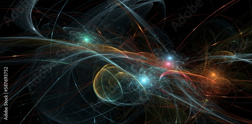 Quantum Virtual Particles Drift in and out of Space, Hyper - abstract, theoretical physics. - Background - Generative AI Illustration
