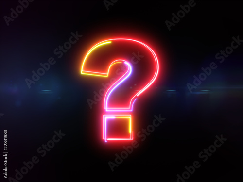 Question mark - colorful glowing outline symbol on blue lens flare dark background