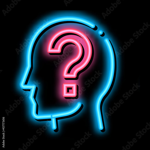 Question Mark In Man Silhouette Mind neon light sign vector. Glowing bright icon transparent symbol illustration