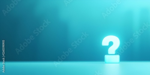 Question mark symbol minimal concept. Glowing question mark symbolizing curiosity and inquiry against a blue background.