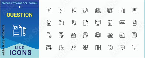 Question simple icon set. Includes symbols for study, result, education and more. Exam vector icon set. Expanded stroke icons. Pixel perfect. Vector illustration.