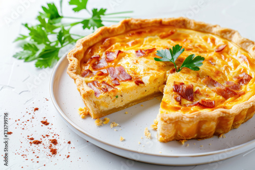 Quiche on a Plate With a Slice Missing