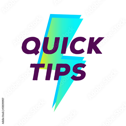 Quick tips lightning label vector modern gradient style for tooltip badge, solution and advice banner, helpful tricks, useful information sticker, education tag, hint, new knowledge and study practice