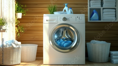 Quiet washing machine operating in a cozy laundry room with soft lighting