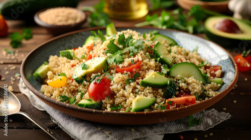Quinoa Salad with Avocado Cucumber and Tomatoes