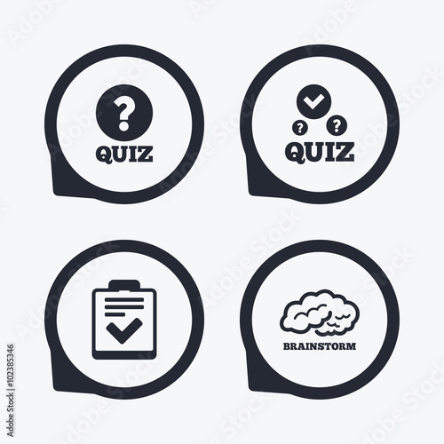 Quiz icons. Checklist and human brain symbols.