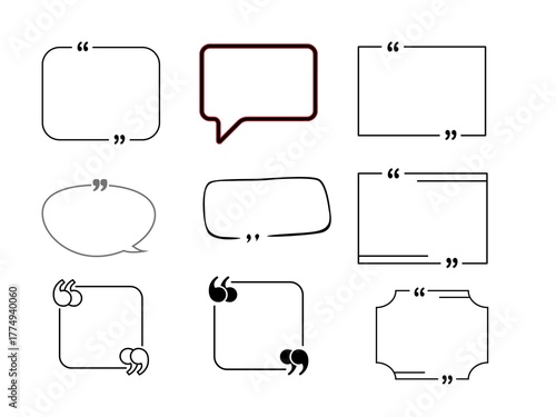 Quote Bubble Icons and Speech Shapes – Chat, Comment, and Dialogue Vector Set on White Background