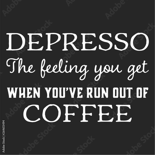 Quote coffee cup typography. Depresso. Calligraphy style quote. Shop promotion motivation. Graphic design lifestyle lettering. Sketch hot drink mug inspiration vector. Coffee break.