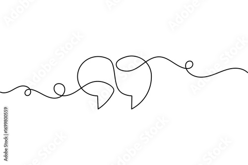 Quotes mark abstract continuous one line drawing isolated minimal outline style vector illustration