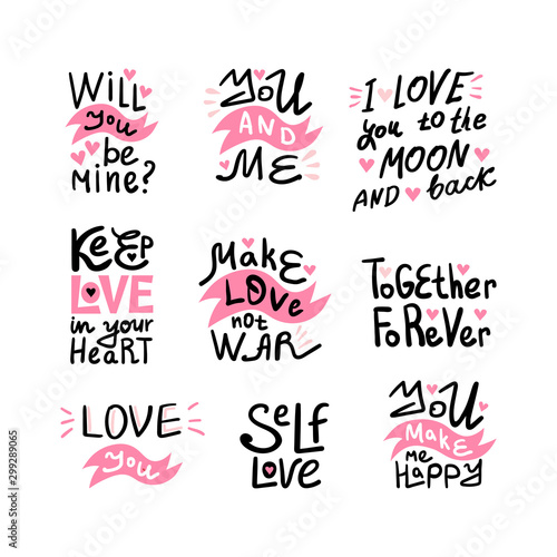 Quotes. Valentine lettering love collection. Hand drawn lettering with beautiful text about love.