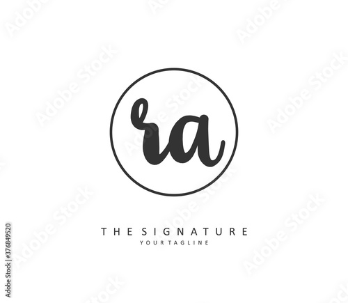 R A RA Initial letter handwriting and signature logo. A concept handwriting initial logo with template element.