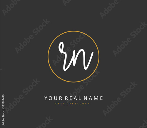 R N RN Initial letter handwriting and signature logo. A concept handwriting initial logo with template element.