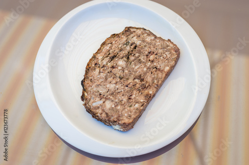 rabbit pate in white plate