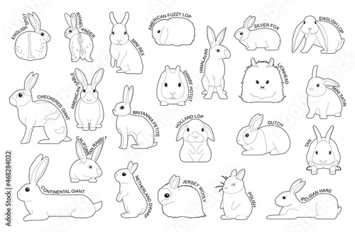 Rabbit Set Various Kind Identify Cartoon Vector Black and White