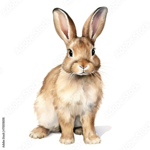 Rabbit watercolor illustration. Painting of forest animal on white background