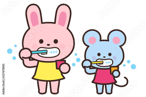Rabbits and rats brushing their teeth