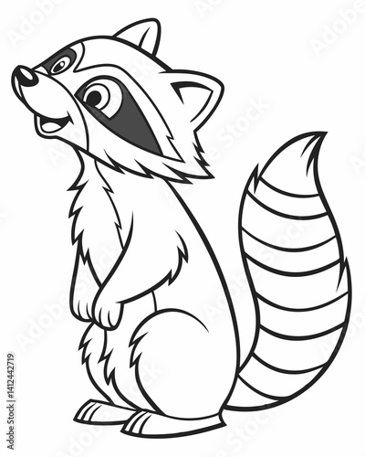 Raccoon Coloring Page, Cute Raccoon Illustration in Line Art