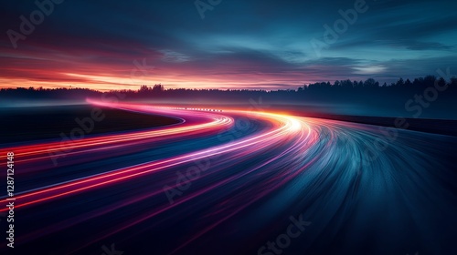 Race Track Sunset Light Trails Scenic Beauty