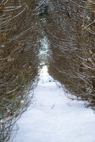 Rada planted pines and their crown. Winter's tale and Christmas trees. Beautiful background for design