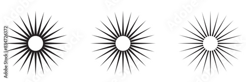 Radial circle lines. Circular radiating lines geometric element. Sun star rays symbol. Abstract geometric shapes. Design element. Vector illustration isolated on white background.
