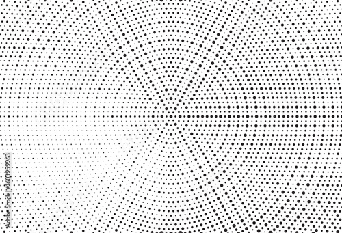 Radial halftone gradient background. Dotted concentric texture with fading effect. Black and white circle shade wallpaper. Grunge rough vector. Monochrome backdrop
