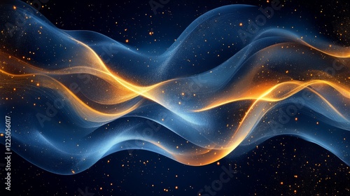 Radiant abstract background with flowing blue and gold light curves, minimalist premium design