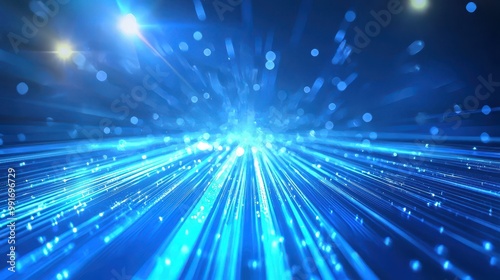 Radiant blue beams of light slicing through a holographic background, setting the tone for a futuristic, tech-driven design.